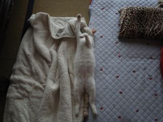 朝晩とても涼しくなったね。コテツも布団の上でリラックス