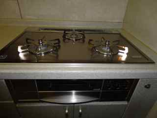 新しくなったガステーブル。ダッチオーブン付きでなかなかええ。魚焼きグリルで煮物もできるし!