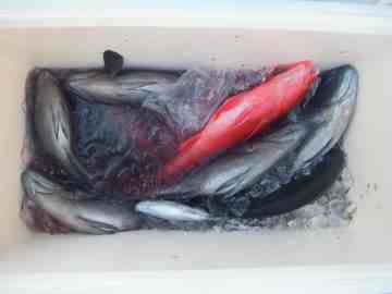 釣ったグレ、イサギ、アカハタです。