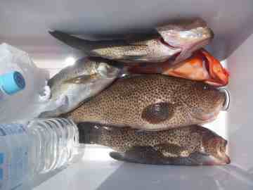 赤崎で釣ったスズキとアカハタです。