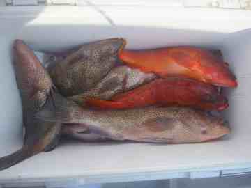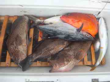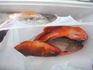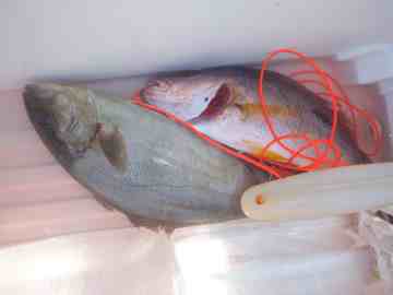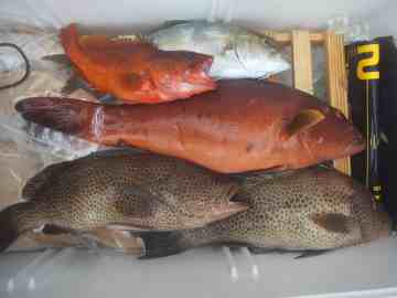 釣ったスズキ、モンツキ、アカハタです。