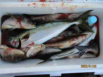 西のハナレで釣ったイサギとハマチです