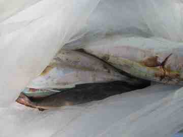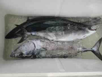 姫島で釣ったカツオとタマメです。
