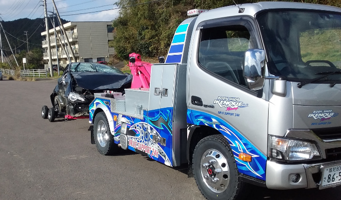 車の事故や故障、バッテリー上がり、スタック、バイクトランスポーター等、365日24時間ロードサービスを行っております。