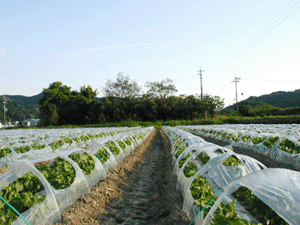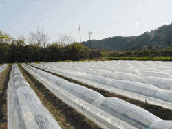 オクラは発芽温度が高いので日中の太陽熱を利用して水封ダクトで夜間の地熱を保ちます。