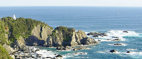 岬の岩陰と未確認物体の日の当たり具合影の位置に注目して下さい。
